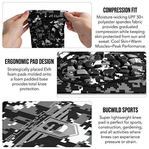 PERFORMANCE BOOSTER… When you’re not actively moving, your muscles cool down quickly, increasing your chances of fatigue and injury. Bucwild’s compression fit padded knee sleeves will keep your muscles warm much longer allowing you to play at your very best.