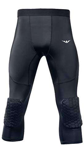 Compression Pants Knee Pads Tights: Capri Leggings Mens Protector for Basketball