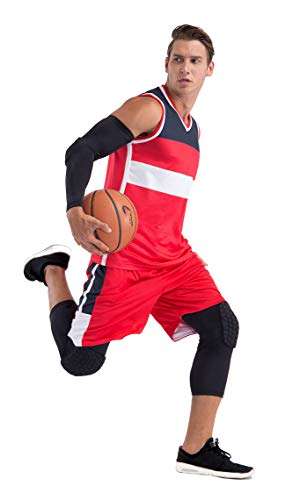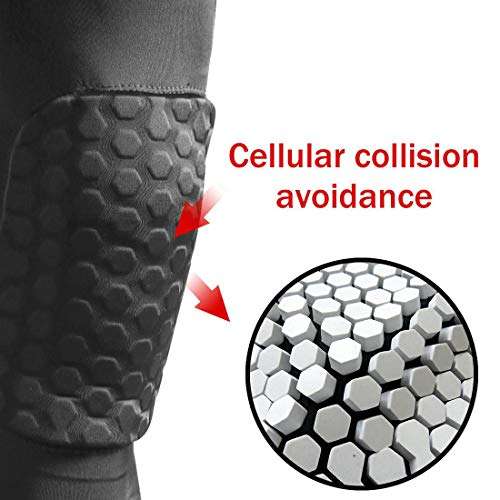 🏀 TECNICAL PROTECTION : HEX honeycomb EVA foam, Anti-collision: 0.5″thick and 40 square inches full cover with 3D flexibility, provides excellent protection for knee braces, patella, tibia. Offer muscle make stronger